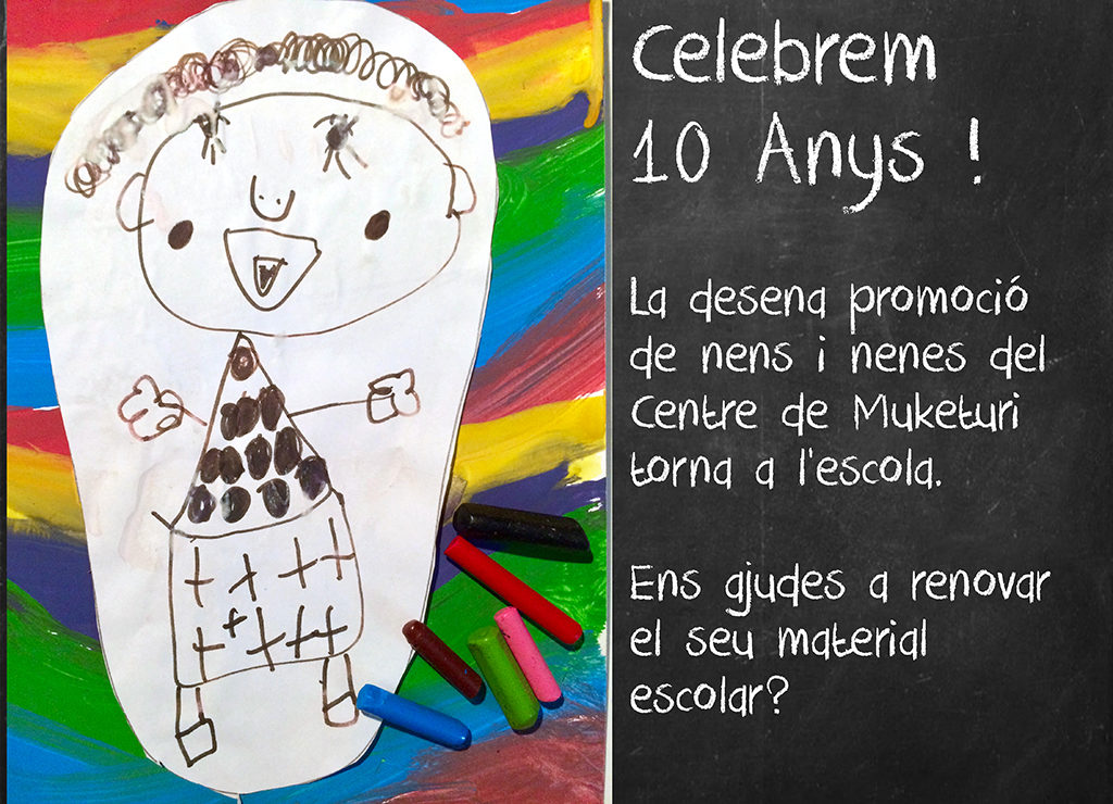 Com bé sabreu, aquest any el centre maternoinfantil de Muketuri ha celebrat el seu desè aniversari. Durant aquests 10 anys, el centre ha donat formació preescolar i alimentació bàsica a 1.360 infants. A més, durant aquest temps, la comunitat missionera de Sant Pau Apòstol que gestiona el centre ha construït pous i horts a 9 poblats; unitats nutricionals a 2 poblats i preses per a recollida d’aigües pluvials, així com una aula d’educació especial per a nens discapacitats.