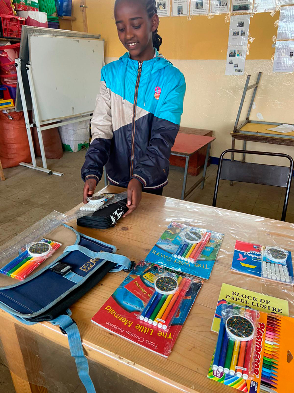 Uns dies abans de la festa, les mestres van preparar aquests lots de material escolar que van regalar als 3 millors alumnes de cada classe, per premiar-los pel seu esforç i aprenentatge durant tot el curs.