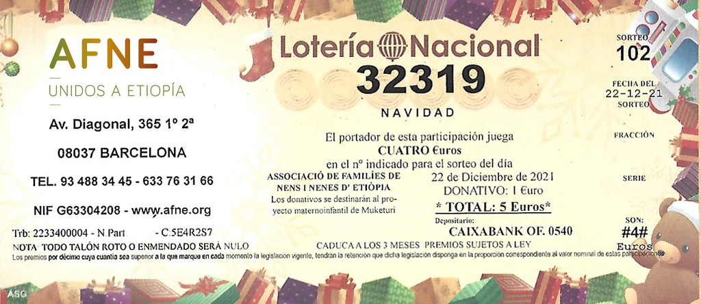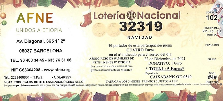 Participacions del número 32319 (4€ al número i 1€ de donatiu).