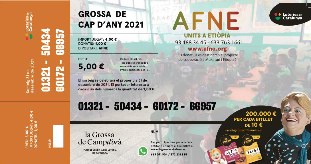Com cada any, tenim Loteria de Nadal i de La Grossa de Cap d’Any. I, com sempre, els donatius obtinguts es destinaran al projecte de cooperació del centre maternoinfantil de Muketuri i a les activitats de l’associació.