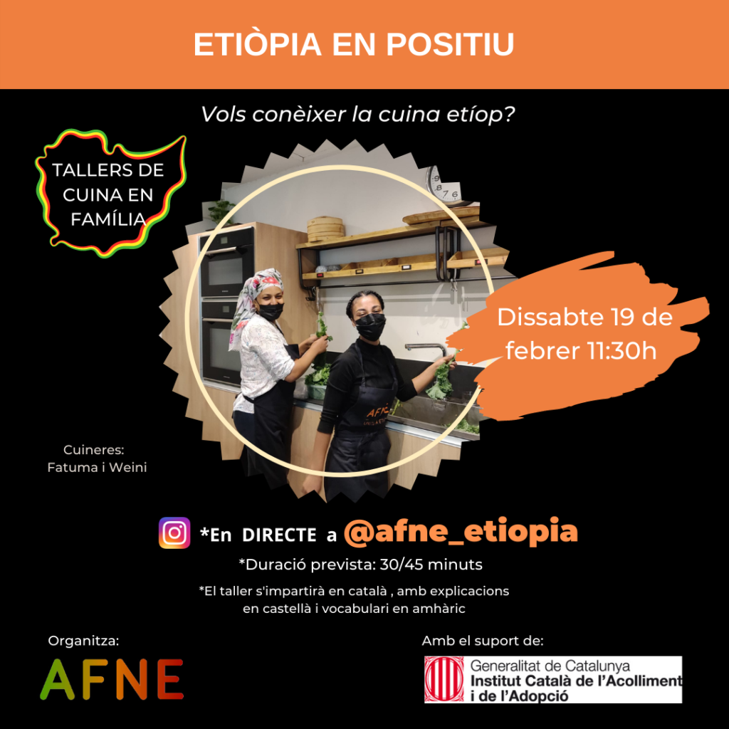 Com bé sabeu, les restriccions derivades de la pandèmia no ens permeten fer els tallers de manera presencial però seguirem acostant-vos a la gastronomia etíop de manera virtual. Podreu seguir el taller a les 11.30h en un directe al nostre perfil d’Instagram@afne_etiopia