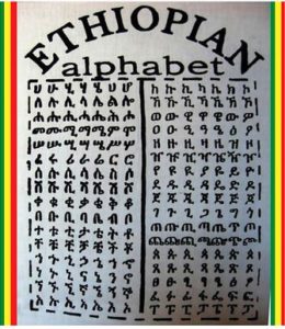 -4- Lingüísticament, l’amhàric deriva del Ge’ez, l’antiga llengua del regne etíop d’Axum, que va ser parlada fins al segle IX dC. Avui dia, es fa servir com a llengua de la literatura i litúrgica de l’Església ortodoxa etíop i s’ensenya a les escoles eclesiàstiques. El Ge’ez, juntament amb el sabeo, l’acadi, l’àrab, hebreu o arameu, entre d’altres, pertany també a la família de les llengües semítiques.
