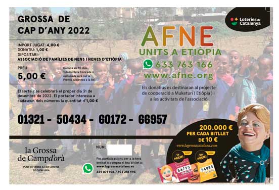 Com cada any, tenim participacions de la Loteria de Nadal i de La Grossa de Cap d’Any. Els donatius obtinguts es destinaran al projecte de cooperació del centre maternoinfantil de Muketuri i a les activitats de l’associació. No us quedeu sense!
