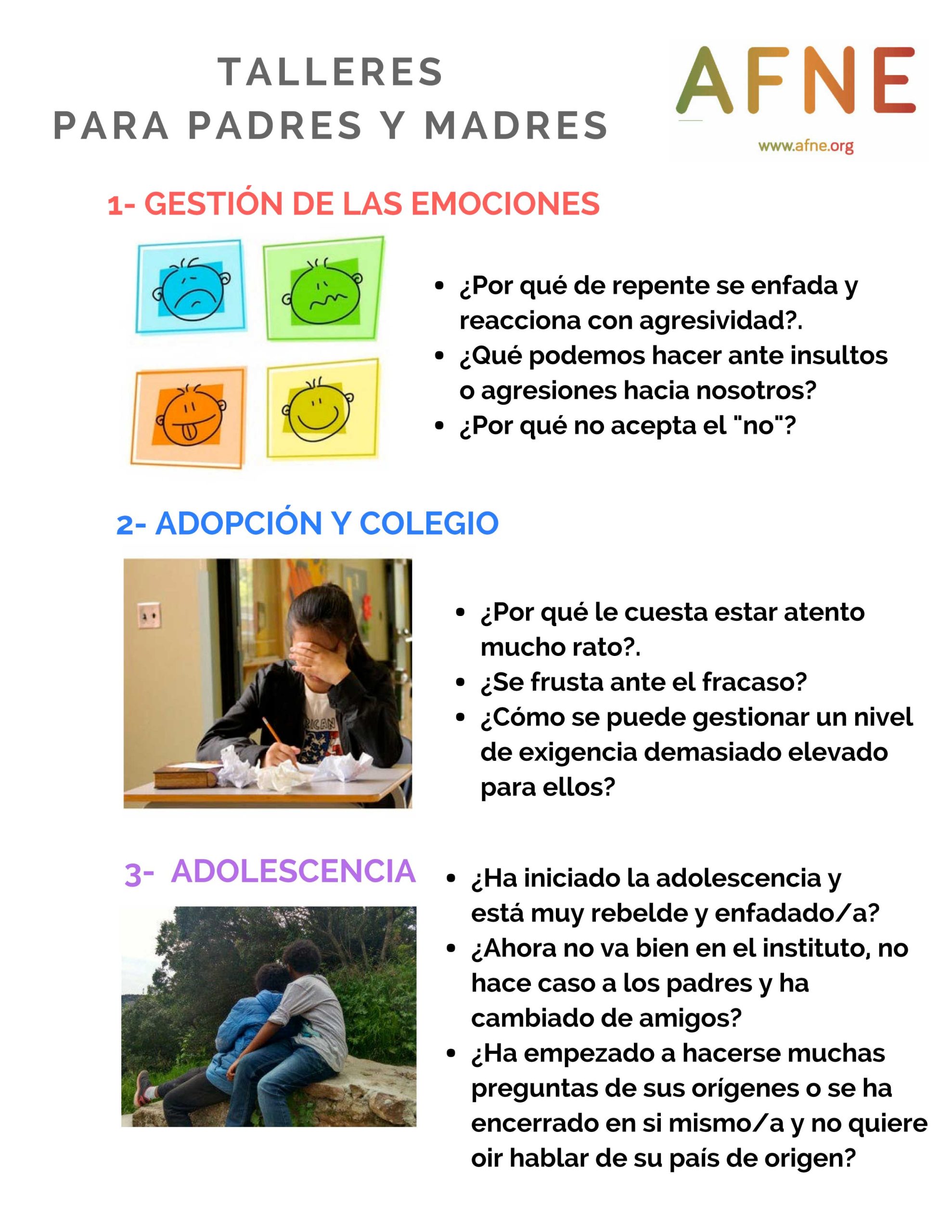 Este año, hemos iniciado tres talleres para padres y madres. Los hemos concebido como un espacio donde hablar y tratar de temas sobre la postadopción, porque a menudo dudamos.
