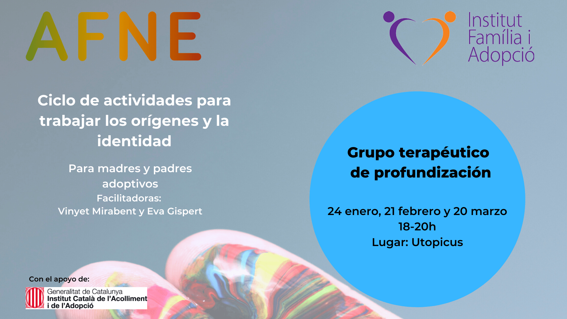 Esta semana iniciamos los grupos terapéuticos de profundización, tanto para madres y padres adoptivos (inicio viernes 24 de enero) como para adoptados/das de más de 17 años (inicio jueves 30 de enero).