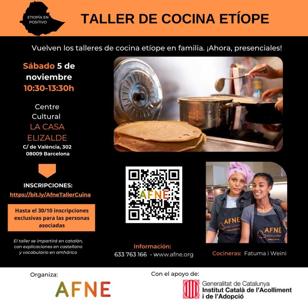 El sábado 5 de noviembre organizamos el segundo taller de cocina etíope para familias de este curso.