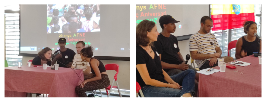 La charla intergeneracional de la tarde proporcionó perspectivas diferentes y enriquecedoras. En la mesa, padres, madres y jóvenes etíopes compartieron sus historias personales, así como la visión sobre el presente y el futuro de AFNE. Todo el mundo desde la sala pudo participar.
